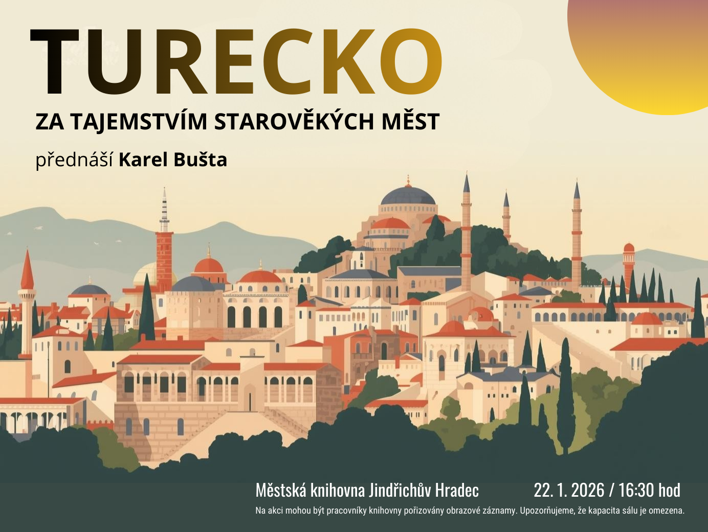 Přednáška Karla Bušty Vás zavede do země plné historie, legend a fascinujících archeologických nalezišť. Objevte příběhy dávných civilizací, které formovaly dnešní Turecko, a vydejte se na cestu po stopách jejich jedinečných památek.