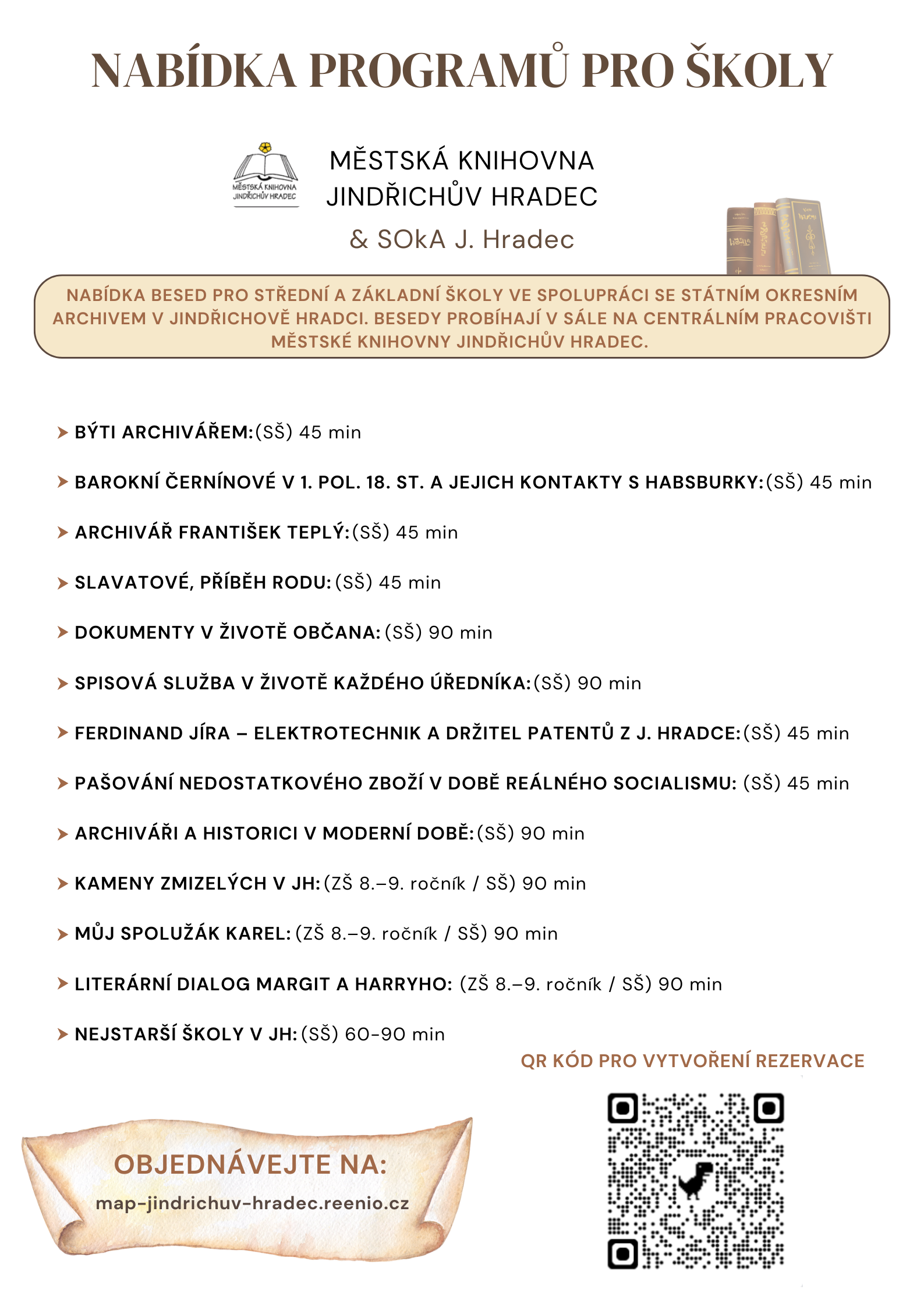 tudenti získají orientační informace o Městské knihovně v Jindřichově Hradci. Seznámí se s prostředím, knižními fondy, službami knihovny a budou moci nahlédnout do unikátních publikací.