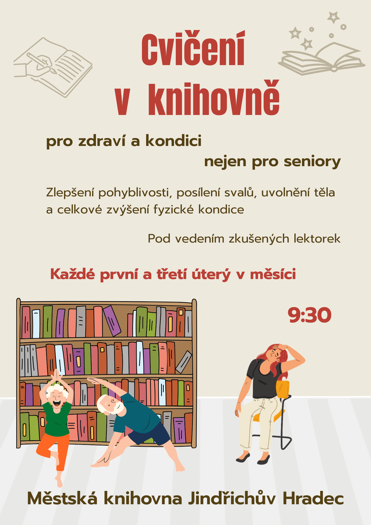 Cvičení pro zdraví a kondici nejen pro seniory podporuje zlepšení pohyblivosti, posílení svalů, uvolnění těla a celkové zvýšení fyzické kondice. Probíhá v klidném tempu s důrazem na správné provedení a individuální možnosti každého účastníka. Vhodné pro všechny, kdo chtějí pečovat o své zdraví a udržet si vitalitu. Cvičení se koná každé první a třetí úterý v měsíci pod vedením zkušených lektorek.