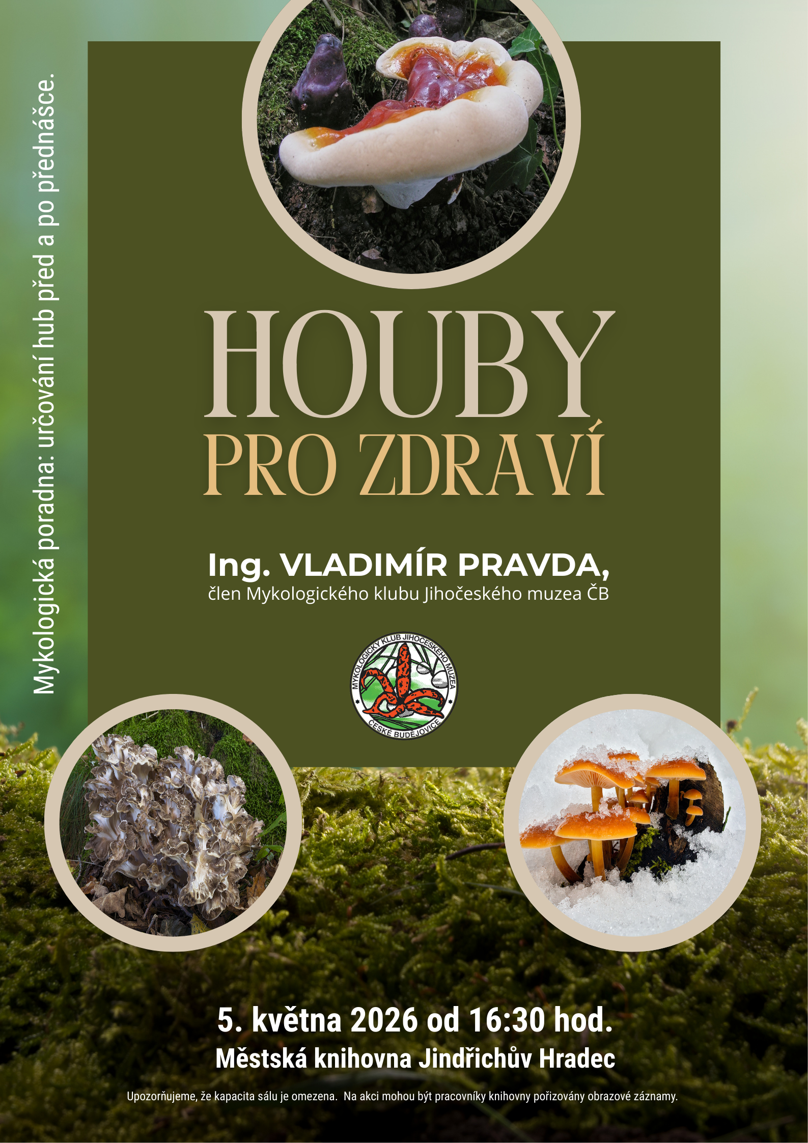 Přednáška zkušeného mykologa nás zavede do světa léčivých hub v našich lesích. Dozvíme se, jaké látky obsahují, jak působí na naše zdraví a které druhy patří mezi nejvýznamnější funkční houby. Nebude chybět ani pohled do historie a tipy na jejich pěstování.